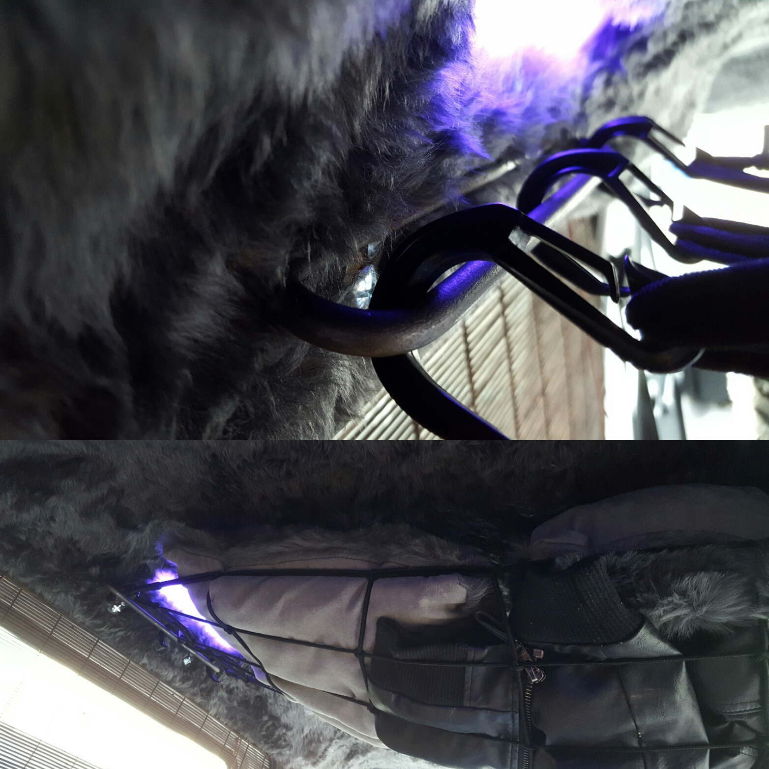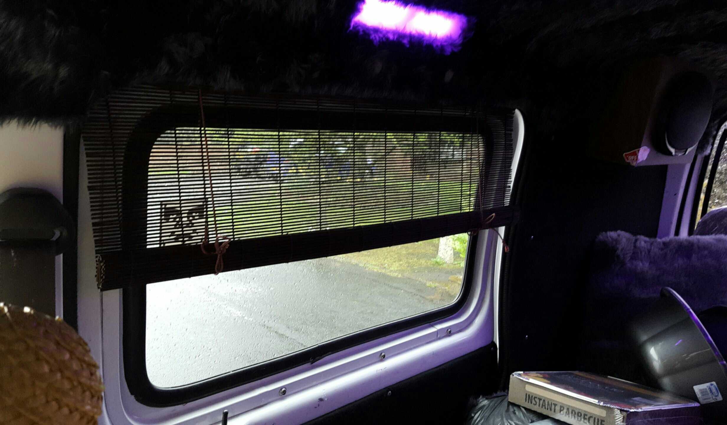 We did the same thing further forward with a bungee cord, to create a curtain rail to separate the front cab from the back of the van while camping.