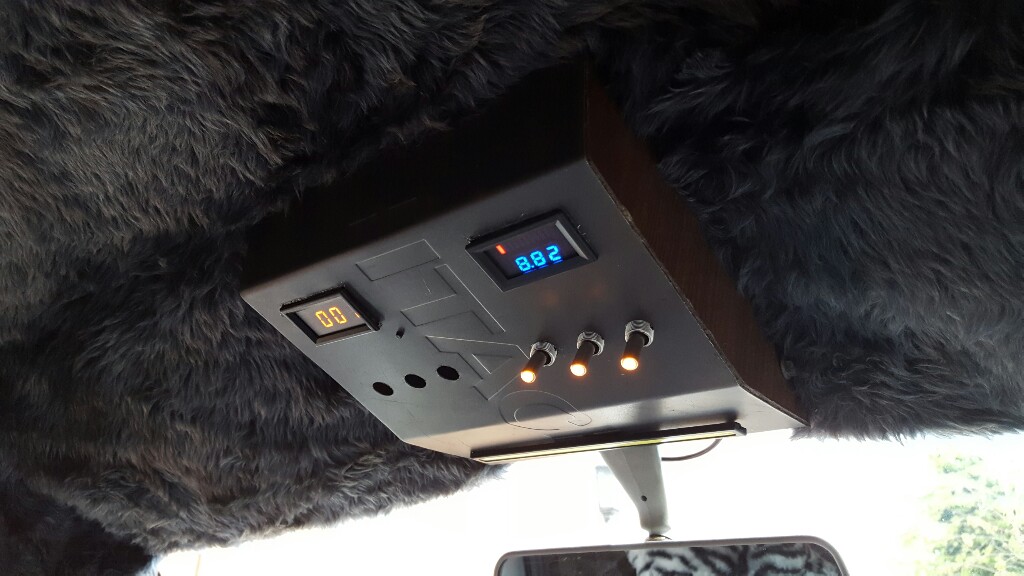 The box that we mounted the switches in is made from an old Hitachi VCR player case. I also fitted a little clock and a volt metre, giving it the back to the future vibe.