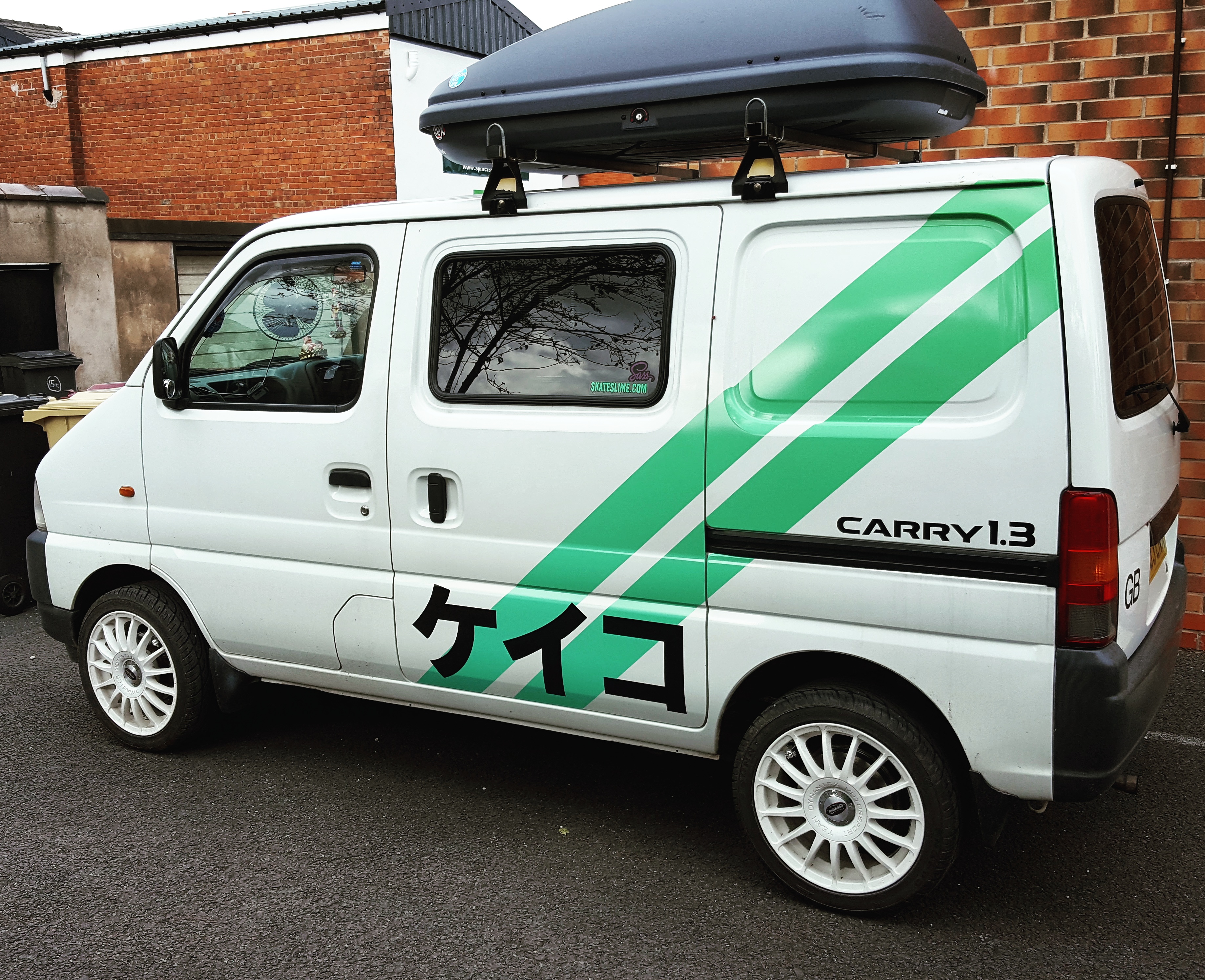 The Japanese characters read “Keiko” which is what I decided to name the van, in honour of the Kei Car: a class of compact vehicle in Japan that the Suzuki Carry falls into.